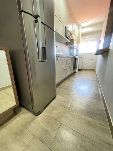 A cozinha é um show à parte: planejada, completa e equipada com geladeira, fogão e forno 🍳.