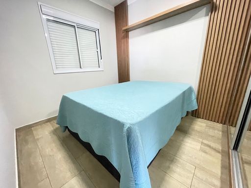 São 2 dormitórios, sendo o quarto de casal um verdadeiro refúgio, com ar-condicionado, armários planejados e cama queen. E detalhe encantador: uma portinha exclusiva para seu pet 🐶💖